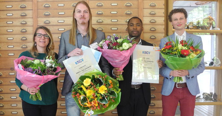 donderdag 26 mei 2016 18:01 Peter Ngene en Bart Limburg hebben donderdag de KNCV-Van Arkelprijs gewonnen. In het Science Centre in Delft ontvingen de twee chemici uit handen van dr. ir. Riet Hilhorst, bestuurslid KNCV, een oorkonde en een prijs ter waarde van EUR 2.500. De KNCV-Van Arkelprijs wordt iedere twee jaar uitgereikt aan een jonge chemicus die hoogstaand wetenschappelijk onderzoek verricht op het gebied van anorganische en fysische chemie.