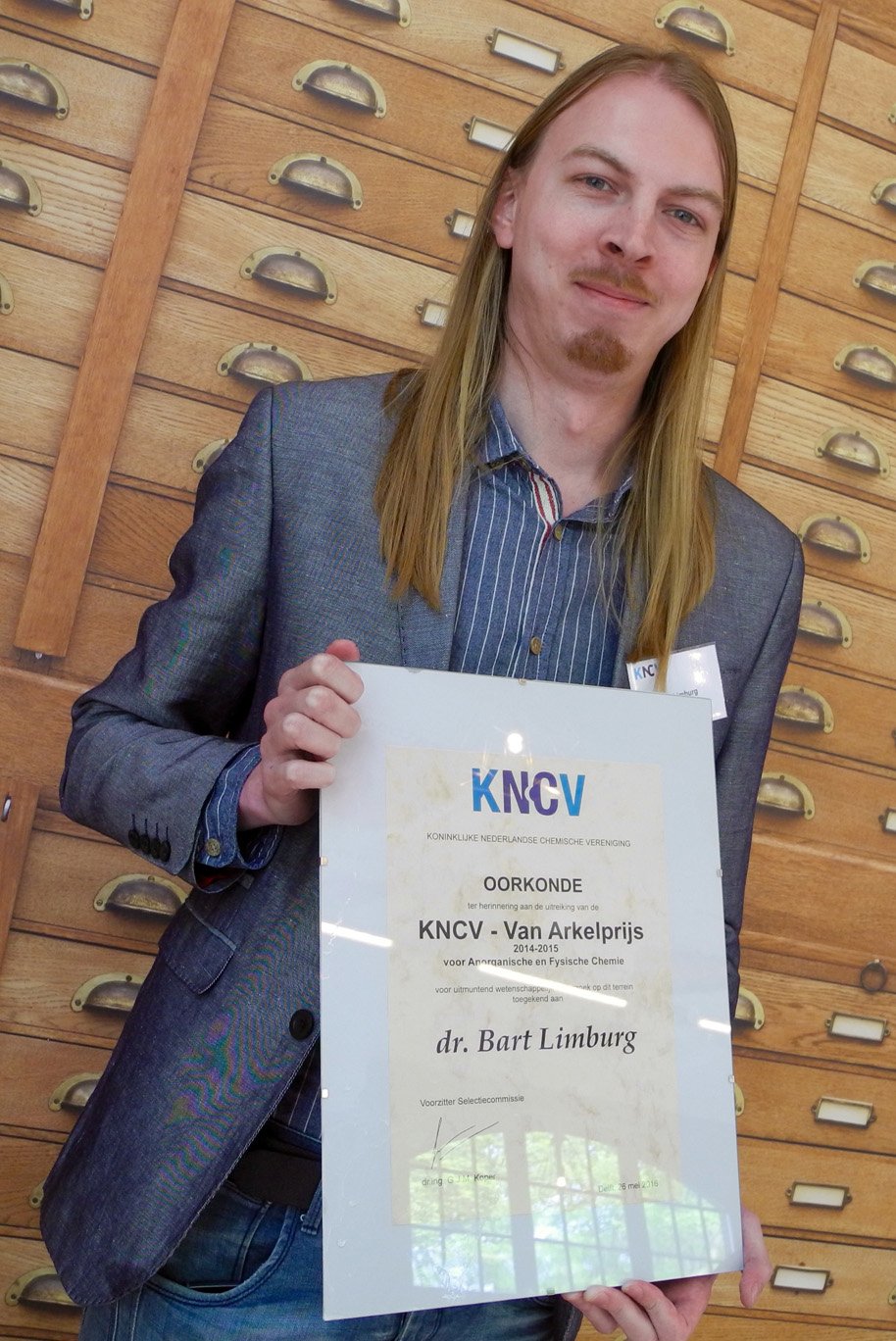 It is therefore, that the selection committee decided to award the KNCV - Van Arkel prize for the period of 2014-2015 to Dr. Bart Limburg and we congratulate him with this honour. Congratulations also to his family and friends, and may it serve as a stimulation to perform excellent research in the future and inspire young researchers to do likewise.